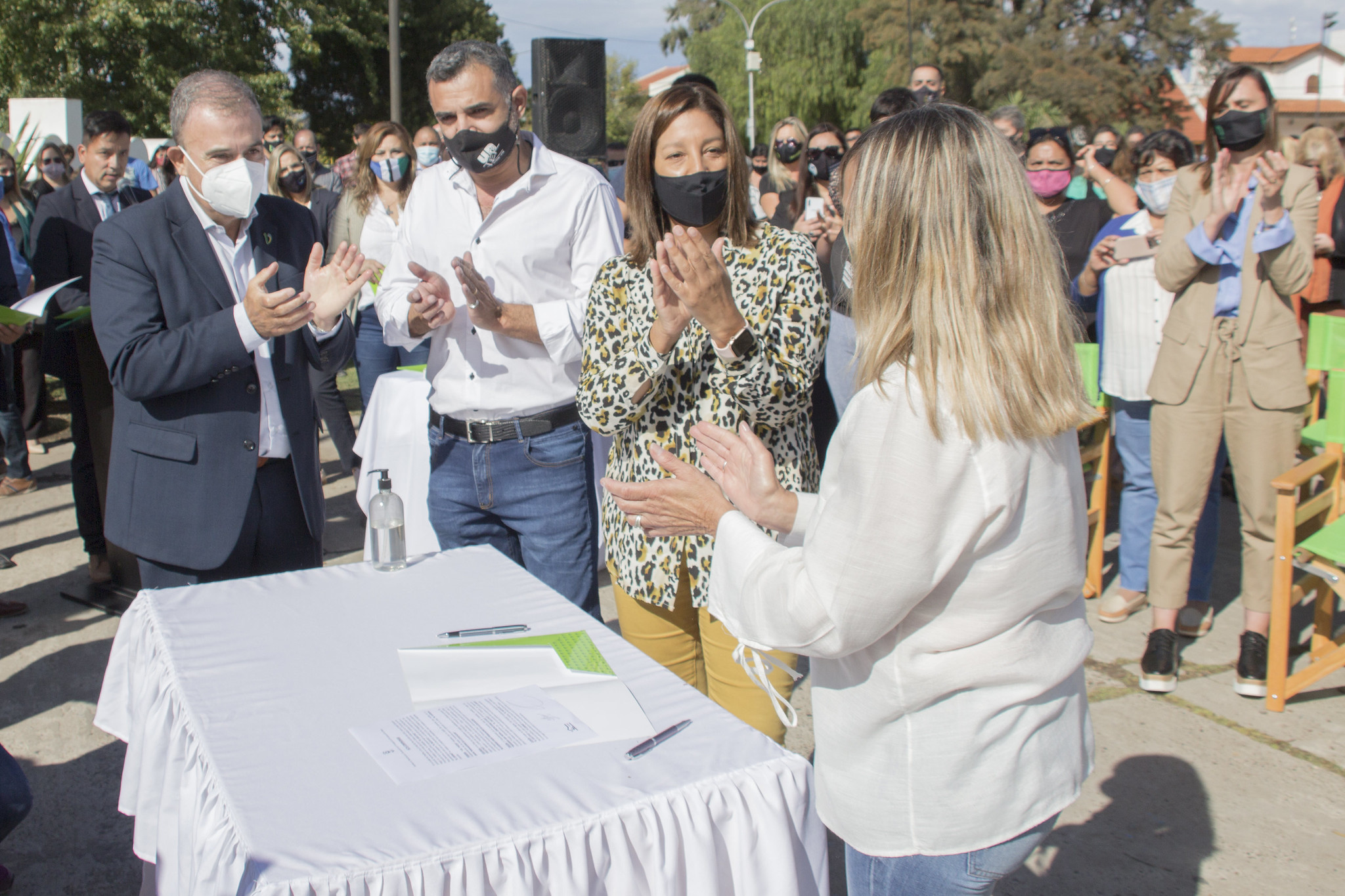 El acto se pudo desarrollar con normalidad, a pesar de la protesta de un grupo de trabajadores de la salud. Ante este contexto en que se llevó adelante el acto, la Gobernadora Carreras enfatizó: “Hoy somos ejemplo de tolerancia y es mucha la enseñanza que nos vamos a llevar para el resto del año que va a ser duro, difícil para el pueblo rionegrino. Y hoy también es un día para celebrar y el Gobierno, con toda la tolerancia, la comprensión, el compromiso, celebra, y además trabaja, se compromete y pone el cuerpo”.